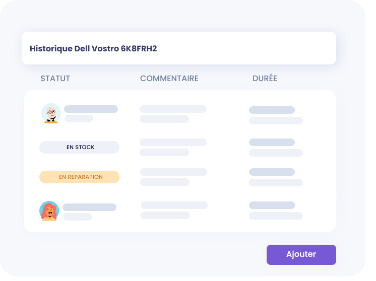 Suivez l'historique de la vie de chacun de vos équipements (affectations, pannes, réparations, dysfonctionnements connus) pour ne rien oublier.