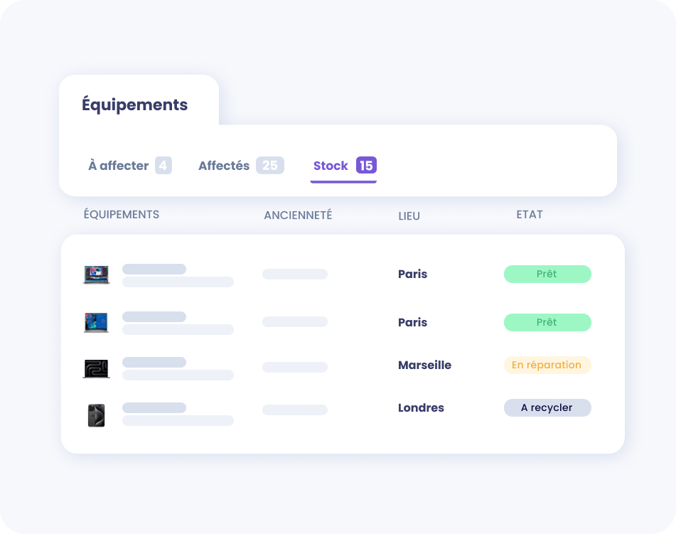 Faites face aux imprévus en suivant le stock sur vos différents sites, par population et par état de fonctionnement.